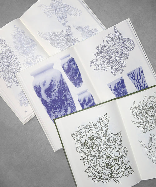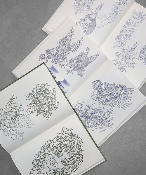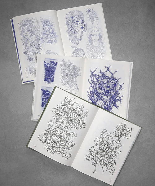 Reference sketchbook 17x24cm offset printet with one special mixed color, hardcover. Various designs drawed and tattooed over the years.